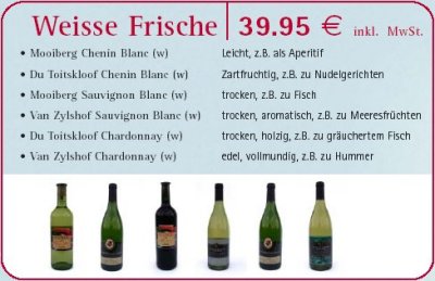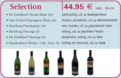 speziell für Sie zusammen gestellte Auswahl hervorragender Weine,