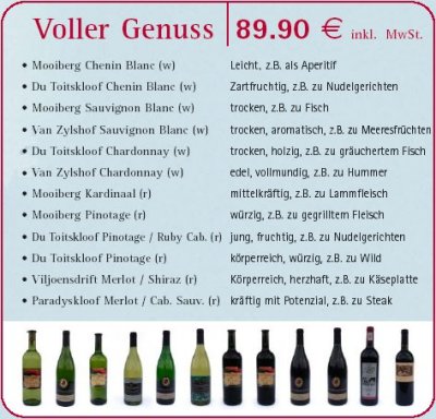 Süd-Afrikas gereift ist. Natürlich sind diese Weine auch